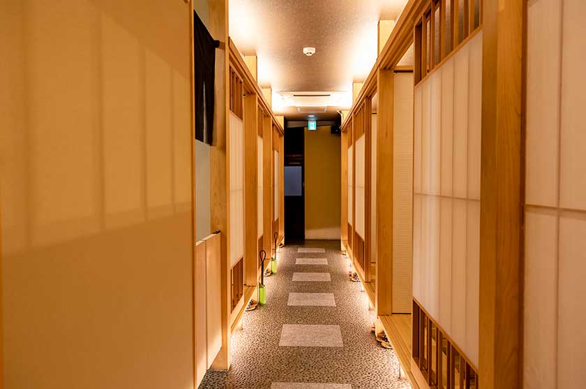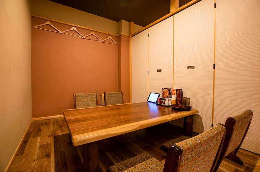 店内は和テイストのインテリア。全席完全個室&セルフオーダーでラーメン、おつまみ、お酒がご注文いただけます。ラーメンのお好み(麺の太さや味の濃さ・背脂の量など)やトッピングも、すべてタッチパネルでご選択可能。お一人様でも個室をご利用頂けますので、通常のラーメン店と同じく、お食事場所として気軽にご利用ください。(※当店が入るビルの2階は、系列店の「とりの黄金屋」。同店もぜひご利用ください)